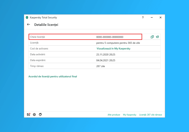 Pentru a solicita o rambursare, contactează serviciul de Asistență pentru clienți Kaspersky.